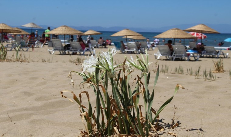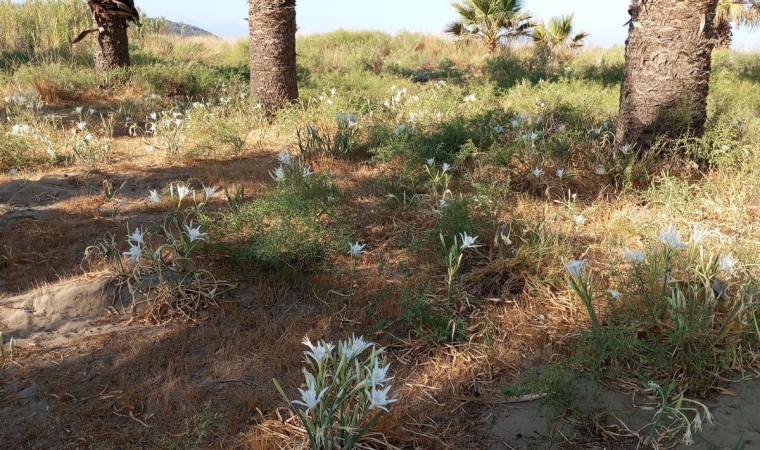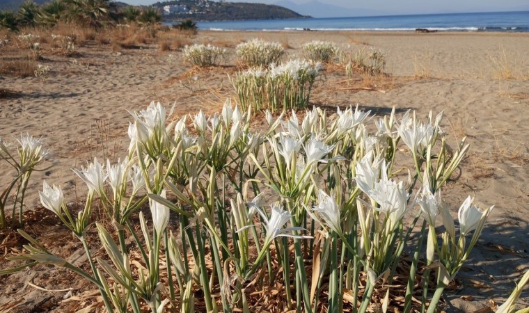 Pamucak’ın beyaz gelinleri olarak bilinen, nesli tükenme altında ve koparma cezası 387 bin 141 TL olan kum zambakları, insan baskıyla her geçen gün yok olmanın eşiğine gelirken, kum zambaklarına dikkat çeken EKODOSD Başkanı Bahattin Sürücü; “Pamucak kumsalları kontrolsüz ve kötü kullanım nedeniyle hem kum tepeciklerini hem de görkemli beyaz çiçekleriyle kum zambaklarını kaybediyor” dedi.