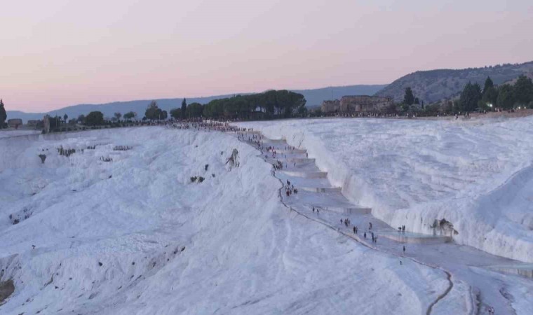 Doğası ve tarihi ile binlerce turiste ev sahipliği yapan Pamukkale travertenleri her gün binlerce turist ziyaret ediyor. Tarih ve fotoğraf tutkunlarının gözde mekanlarından olan alan eşsiz yapısı ile beyaza bürünen alanlar görenleri mest ediyor. Havadan gün batımında çekilen görüntülerde turistlerin en çok ziyaret edip fotoğraf çektirdiği havuzlar ilginç manzaralar oluşturuyor. Travertenlerin yanı sıra Hierapolis Antik Kenti de tarihi ile ayrıca ilgi görüyor. Yıllara meydan okuyan antik tiyatro, güneşin batışını fotoğraflamak isteyenler tercih ettiği alanların başında geliyor.