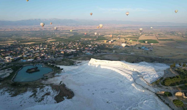 UNESCO tarafından dünya miras listesine eklenen ve dünyanın 8’inci harikası olan Pamukkale’de balon turları bölgeye gelen turistlere görsel bir şölen sunuyor. Gün doğumundan yarım saat önce Pamukkale semalarında yükselen balonlara binen turistler, Pamukkale, Hierapolis ve Leodikya’yı havadan görme fırsatı buluyor. Bölgede 12 ay boyunca uçuşların devam ettiğini söyleyen balon pilotu İsmail Hiraözlü, “Havanın durumuna göre bazen uçuşların iptal olduğu günler oluyor. Günde yaklaşık 300 turist ağırlıyoruz. Bu senenin daha yoğun geçmesini bekliyoruz. Şu anda yoğun olarak Rus kafilelerimiz gelmekte. Çinli turistlerde yakın bir zamanda gelmeye başlayacaklar” dedi. Turistlerin tepkilerinin oldukça iyi olduğunu söyleyen Hiraözlü, “Turistlerimiz travertenleri, Hierapolis’i ve bazen de Leodikya’yı yüksekten görüyorlar. Genellikle Rusya’dan, Çin’den, Malezya’dan misafirlerimiz geliyor. Latin gruplarımız da var. Yazın genellikle Rus turistlerimizi ağırlıyoruz. Turistlerimiz özellikle gün doğumuyla birlikte Pamukkale’nin beyazlığı buluşunca daha mutlu oluyorlar” şeklinde konuştu.