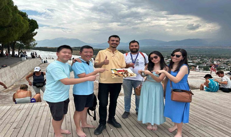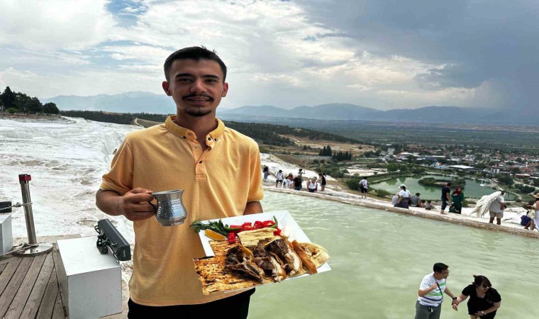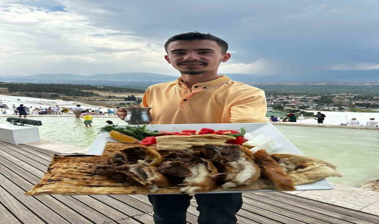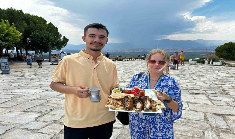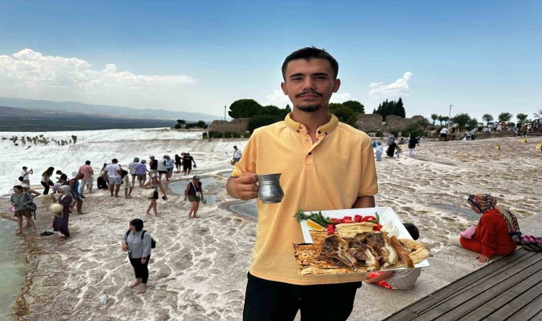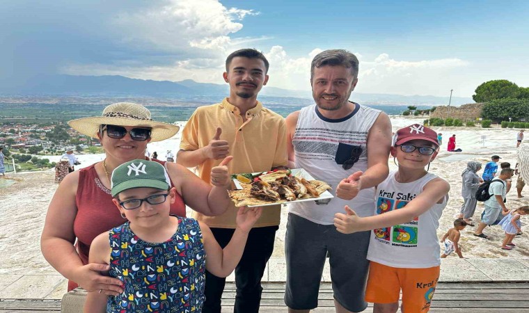 UNESCO Dünya Miras Listesinde yer alan Pamukkale’yi görmek için Denizli’ye gelen turistler, beyaz teraventler üzerinde tandır kebabıyla tanıştı. Denizli Tandır Kebabını dünyaya tanıtmak isteyen genç girişimci Sadık Olpak’ın kebap ikramı yerli ve yabancı turistleri memnun etti.