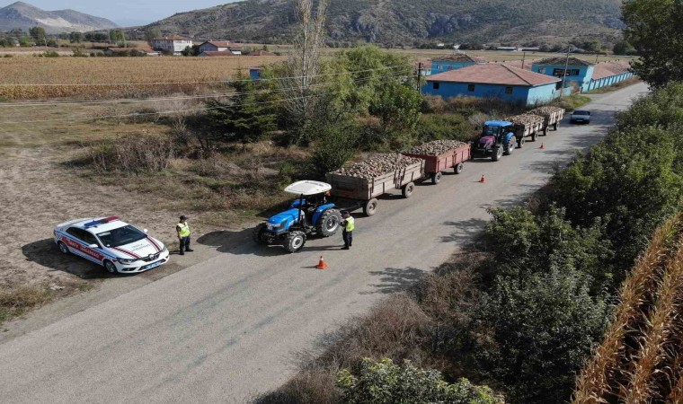 Tokat’tın Sulusaray ve Yeşilyurt ilçelerinde başlayan pancar hasadıyla artan traktör kullanımına jandarma denetim yaptı.