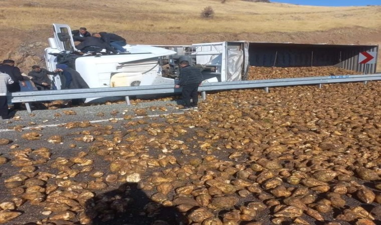 Elazığ’da pancar yüklü tır kontrolden çıkarak devrildi. Kazada 1 kişi yaralandı.