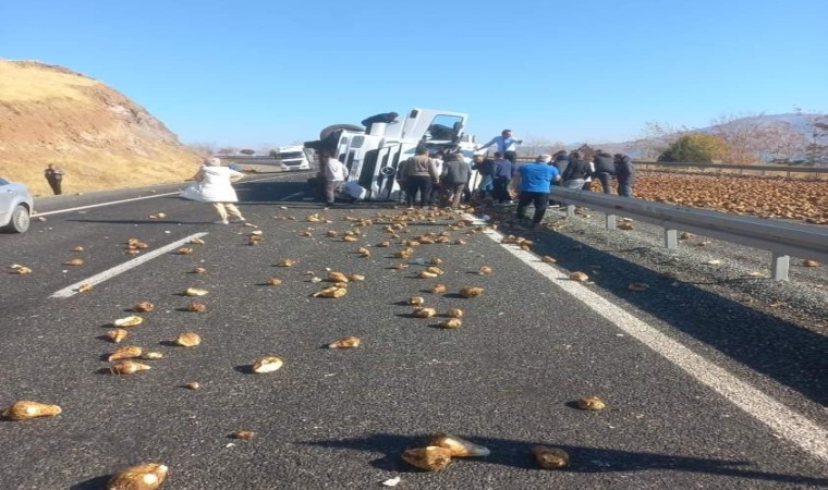 Kaza, Elazığ-Diyarbakır karayolunun 25’inci kilometresinde meydana geldi. Edinilen bilgiye göre, sürücüsü öğrenilemeyen pancar yüklü kamyon kontrolden çıkarak devrildi. Kaza sonrası ihbar üzerine bölgeye sağlık ve güvenlik güçleri yönlendirildi. Kamyonda bulunan bir kişi yaralandı. Yaralı, olay yerindeki ilk müdahalenin ardından hastaneye kaldırıldı.