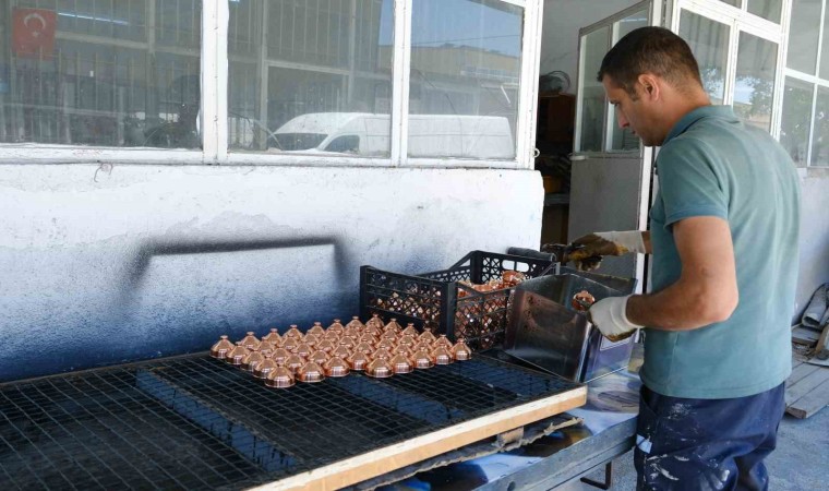 Sağlıklı bir yaşam için her evde bakır ürünlerin bulunması gerektiğine dikkat çeken Karakaş, bakır ürünlerin yapım ve işlemesinin çok zor olduğunu ve bütün aşamalarının atölyede yapıldığını ifade ederek, “Bakır ilk önce polisajdan keçeye girer. Daha sonra sıvamaya girer ve burada şeklini alır. Bakırın parlaması için fırça işlemi uygulanır. Bir sonraki aşamada yıkanıp, kurutularak bant işlemine geçilir. Bant işleminden sonra boyanan ve vernik atılan bakır süsleme için işleme ve kart işlemlerinden geçerek son halini alır” dedi.