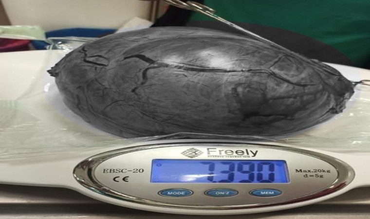 Eskişehir’de yaşayan 44 yaşındaki Gülfer Kurt, pandemi döneminde aldığı kiloları veremediği gerekçesiyle doktora gitti. Yapılan muayenelerin ardından Gülfer Kurt, adeta hayatının şokunu yaşadı. Gittiği bir dahiliye doktoru tarafından Gülfer Kurt’un batın bölgesinde büyük bir kitle tespit edildi. Eskişehir Yunus Emre Devlet Hastanesi’ne sevk edilen Kurt, Kadın Hastalıkları ve Doğum Bölümü’nde yapılan testlerin ardından 8 Aralık Cuma günü ameliyata alındı. Yaklaşık 2 saat süren operasyon sonucu Gülfer Kurt’un batın bölgesinden, 7 kilo 390 gram ağırlığında kitle çıkarıldı. Boyu 35 santimetre, çevresi ise yaklaşık 85 santimetre gelen kitle, operasyonu gerçekleştiren doktorlar dahil bütün herkesi şok etti.