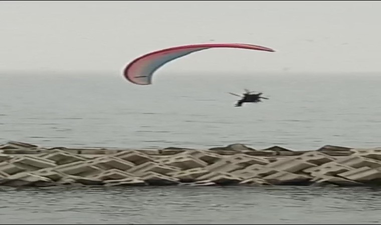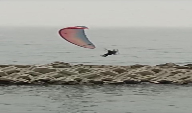 Düzce’nin Akçakoca ilçesi Karadeniz sahilinde uçuş yaparken rüzgarın etkisiyle dalgakıran taşların üzerine düşen yamaç paraşütçüsü yaralandı. O anlar cep telefonu kamerasına yansıdı.
