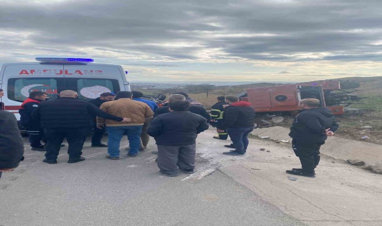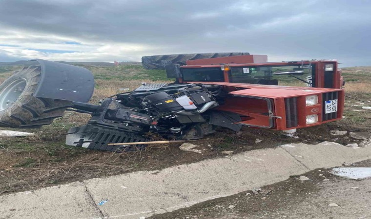Amasya’nın Suluova ilçesinde römorkuyla seyir halindeki traktör, şarampole devrilerek paramparça oldu. Yaralanan sürücü ölümden döndü.