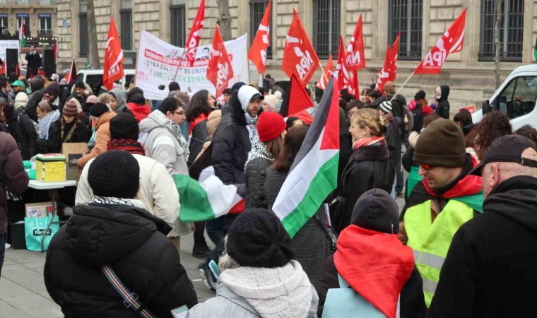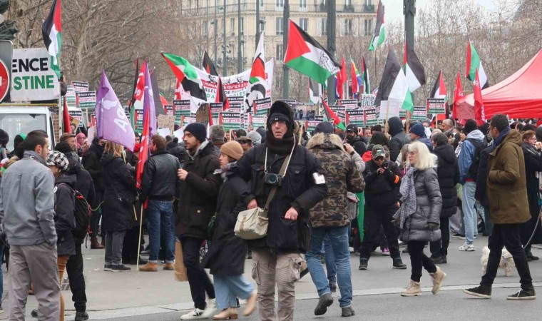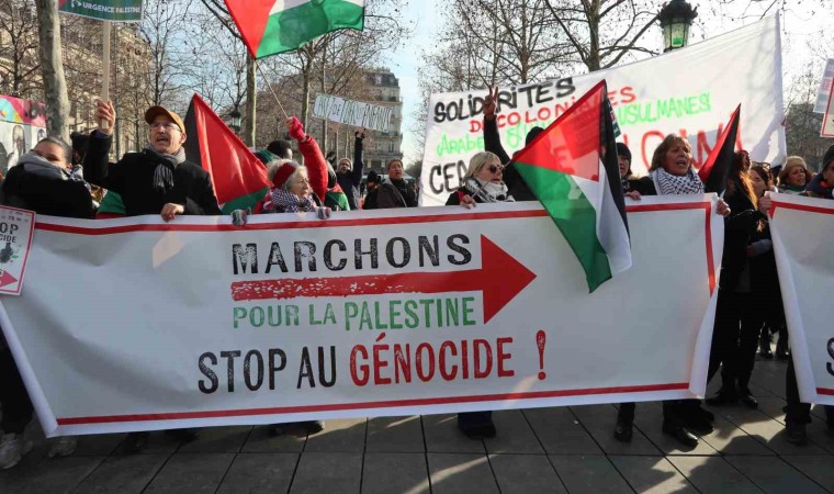 Fransa’nın başkenti Paris’te 21 kişiden oluşan Filistinli grup, “Soykırımı Durdurun” yazılı pankartla Belçika’nın başkenti Brüksel’de bulunan Avrupa Konseyine doğru yürüyüş başlattı.