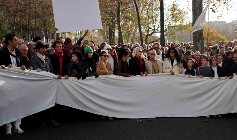 İsrail’in 7 Ekim’den bu yana Gazze Şeridi’ne yönelik saldırıları devam ederken, dünyanın dört bir yanından Gazze Şeridi’nde ateşkes için eylemler sürüyor. Fransa’nın başkenti Paris’te sanatçıların ve entelektüellerin girişimiyle ateşkes için sessiz yürüyüş düzenlendi. Dünya Arap Enstitüsü önünde başlayan yürüyüş, Yahudi Sanat Müzesi’nin önünden geçilmesinin ardından Arts et Métiers Meydanı’nda son buldu.