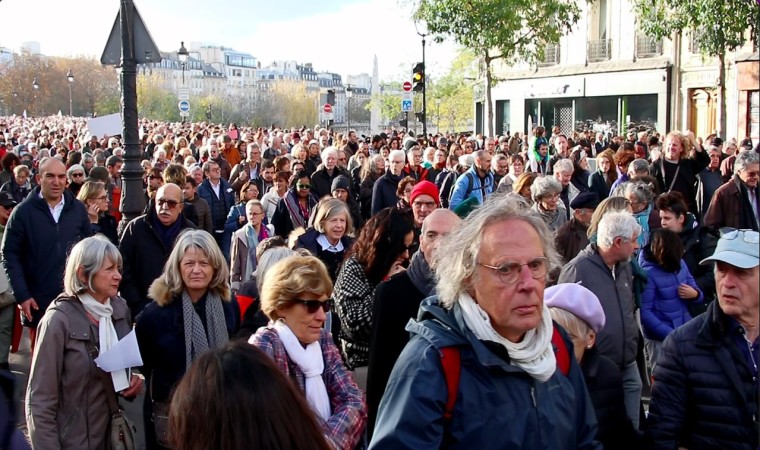 Yürüyüşe Laure Calamy, Elsa Zylberstein, Pierre Richard, Isabelle Adjani, Sami Bouajila, Claude Lelouch ve Marek Halter gibi ünlü isimlerin yanı sıra Fransa’nın eski Kültür Bakanı Jack Lang da katıldı. Yürüyüş sırasında herhangi bir slogan atılmazken, üzerinde yazı olmayan beyaz bir pankart açıldı. Bazı göstericiler ise ellerinde beyaz bayraklar taşıdı.