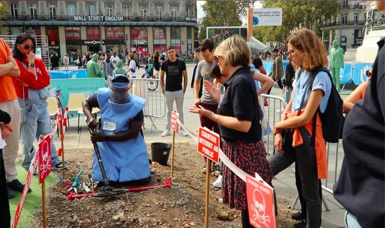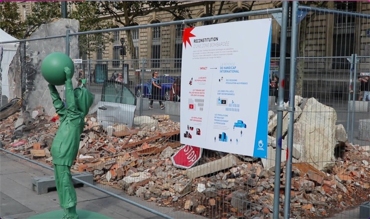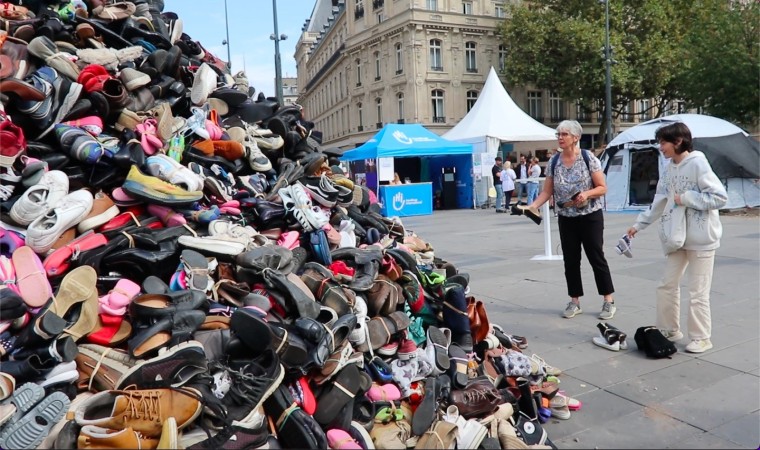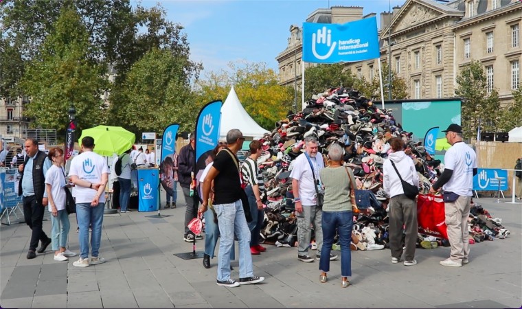 Uluslararası sivil toplum kuruluşu Handicap International, Fransa’nın başkenti Paris’te mayın ve bombalar nedeniyle uzuvlarını kaybedenlere destek gösterisi düzenledi. Handicap International, İsrail’in saldırıları nedeniyle geçen sene uzuvlarını kaybederek sakat kalan sivillerin sayısının yüzde 130 arttığını belirtti. Republique Meydanı’nda 30’uncusu düzenlenen gösteride katılımcılar, her bir ayakkabının mayın ve bombalar nedeniyle ölen ya da yaralanan sivilleri temsil ettiği ayakkabılardan oluşan bir piramit yaptı. Mayın ve bombalar nedeniyle sakat kalan çocukların ve yetişkinlerin heykelleri ile saldırılar sonucu yıkılan binaların enkaz parçalarının sergilendiği eylemde, yerinden edilen aileleri temsilen çadırlar kuruldu.