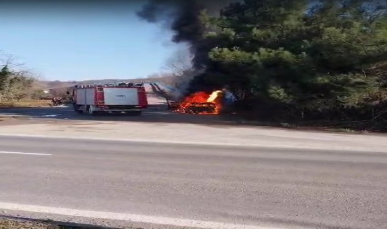 Zonguldak’ın Çaycuma ilçesinde yol kenarına park ettiği otomobil bir anda alev topuna döndü, sürücü son anda kendini dışarı atarak kurtuldu.