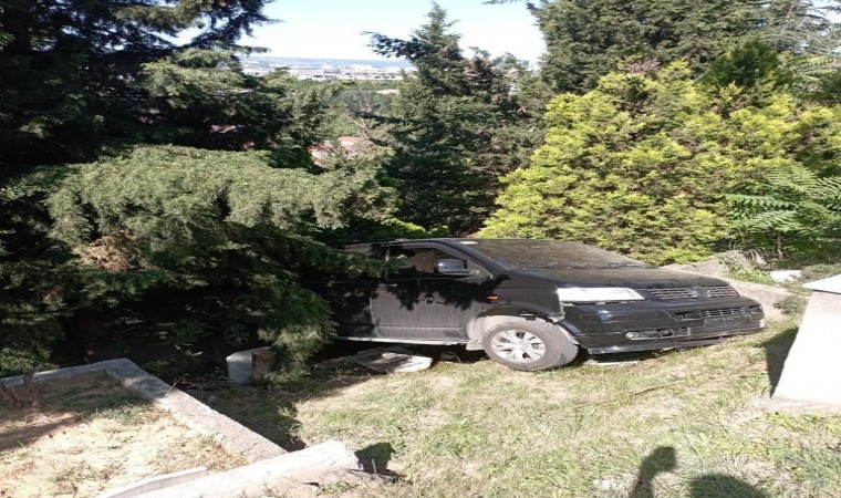 Park halinde freni boşalan araç mezarların üzerine uçtu