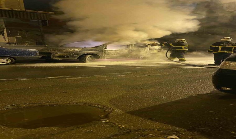 Yanan aracın sürücüsü kundaklama iddiası üzerine polis merkezine giderek şikayetçi oldu.