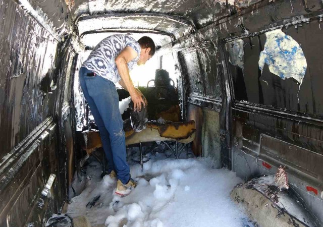 Antalya'da bulunan ve içinde elektrik tesisat malzemeleri bulunan kapalı kasa kamyonet, motor bölümünde çıkan yangın sonucunda kullanılamaz hale geldi. Bu olay sırasında bazı vatandaşlar ellerinde kovalarla su taşırken, yakındaki bir işyeri sahibi ise yangın tüpü kullanarak müdahale etti.