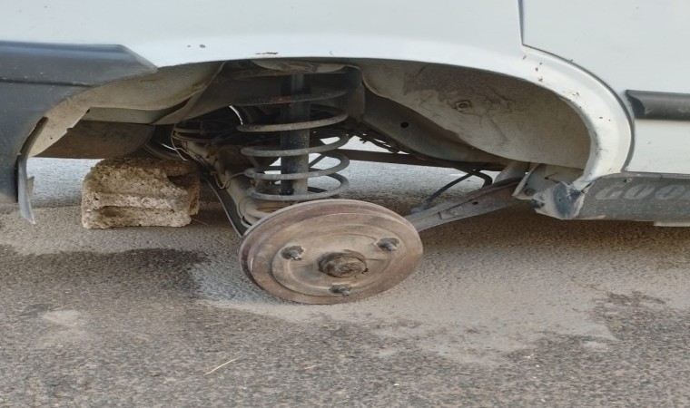 Adıyaman’da, park halindeki bir otomobilin tekeri jantıyla birlikte çalındı.