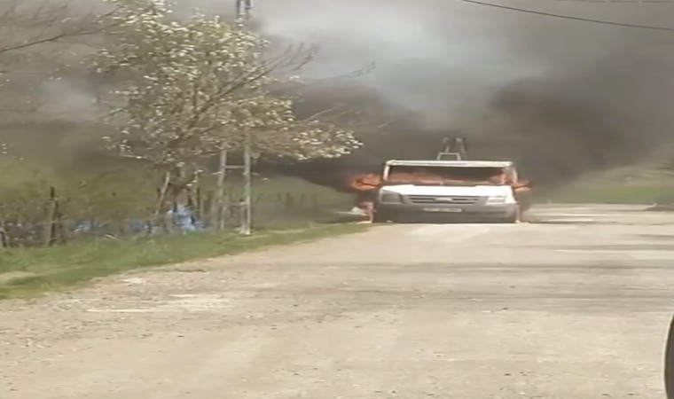 Kastamonu’nun İhsangazi ilçesinde park halindeyken alevlere teslim olan kamyonet kullanılmaz hale geldi.