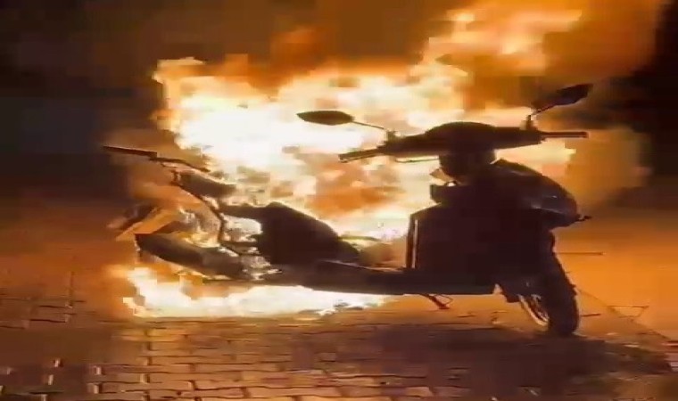 Adıyaman’da, park halinde olan bir motosiklet alev alarak yandı.