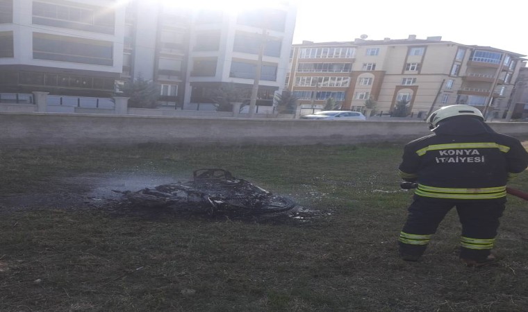 Konya’nın Kulu ilçesinde park halindeyken biranda yanmaya başlayan motosiklet kullanılamaz hale geldi.