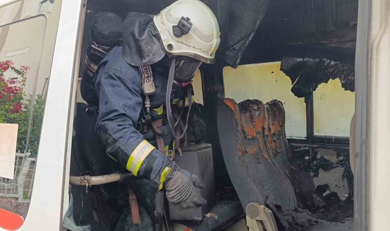 Manavgat’ta park halindeki okul servisinde henüz belirlenemeyen bir nedenle yangın çıktı. Yangında minibüste maddi hasar meydana gelirken, araç sahibi 1 saat önce aracı yıkadığını, olaya anlam veremediğini söyledi.