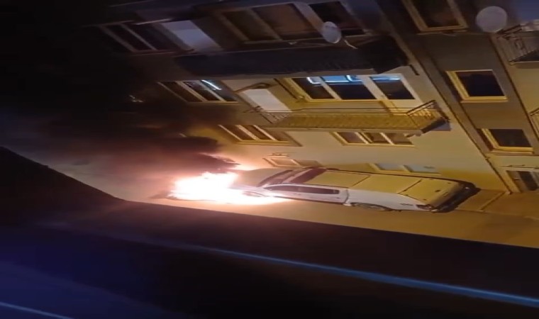 Bursa’da park halindeki bir otomobil alev alev yandı. O anlar anbean amatör kameraya yansıdı.