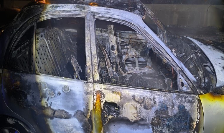 Osmaniye’nin Kadirli ilçesinde park halindeki otomobil, çıkan yangında kullanılamaz hale geldi.