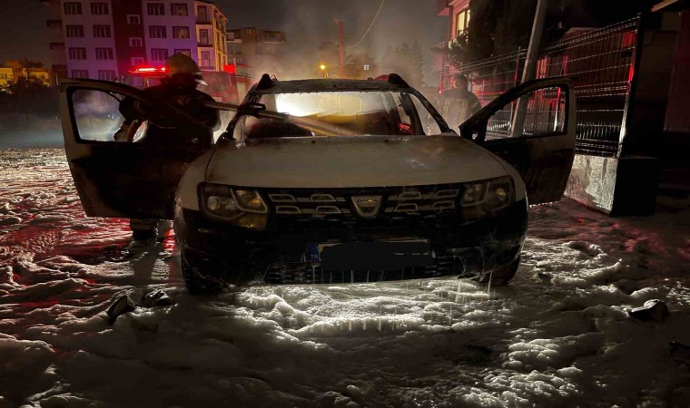 Antakya ilçesi General Şükrü Kanatlı Mahallesi’nde park halindeki bir araçta henüz belirlenemeyen nedenle yangın çıktı. Yangını fark eden vatandaşların durumu 112 Acil Çağrı Merkezine bildirmesi üzerine olay yerine itfaiye ekipleri sevk edildi. Ekiplerin hızlı müdahalesiyle alevler kontrol altına alındı. Yangında araç kullanılmaz hale geldi. Aracın alev alev yandığı anlarsa cep telefonu kamerasına yansıdı.