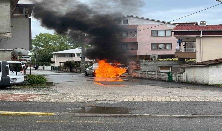 Sakarya’nın Serdivan ilçesinde park halindeki otomobil alevlere teslim oldu. Aracın alev alev yandığı anlar cep telefonu kamerası ile saniye saniye kaydedildi.