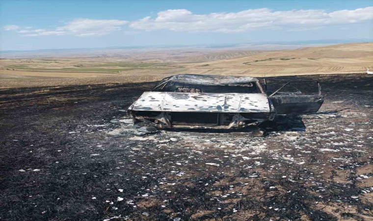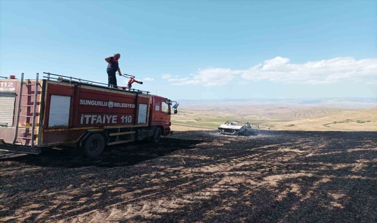 Çorum’un Sungurlu ilçesinde tarlada park halindeyken aniden alev alan otomobil kül oldu.
