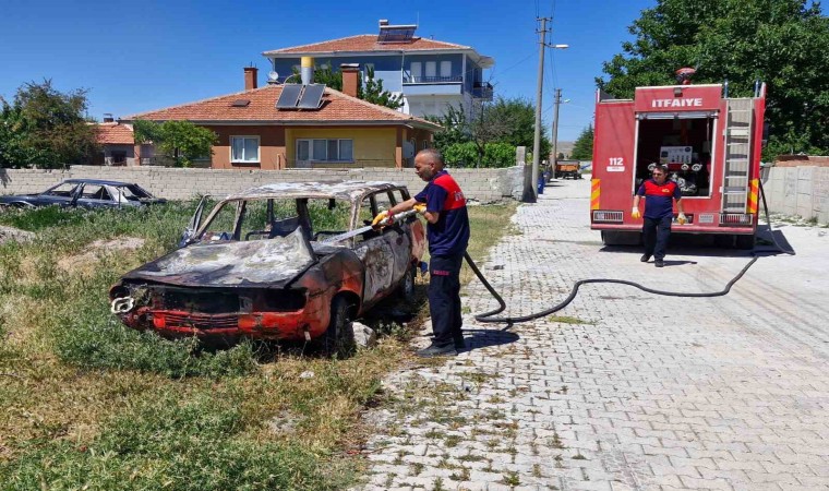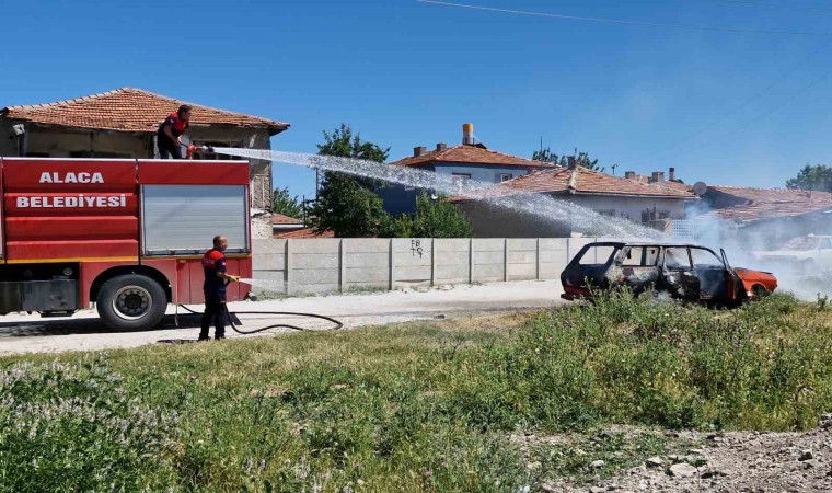 Çorum’un Alaca ilçesinde alev alan park halindeki otomobil küle döndü.