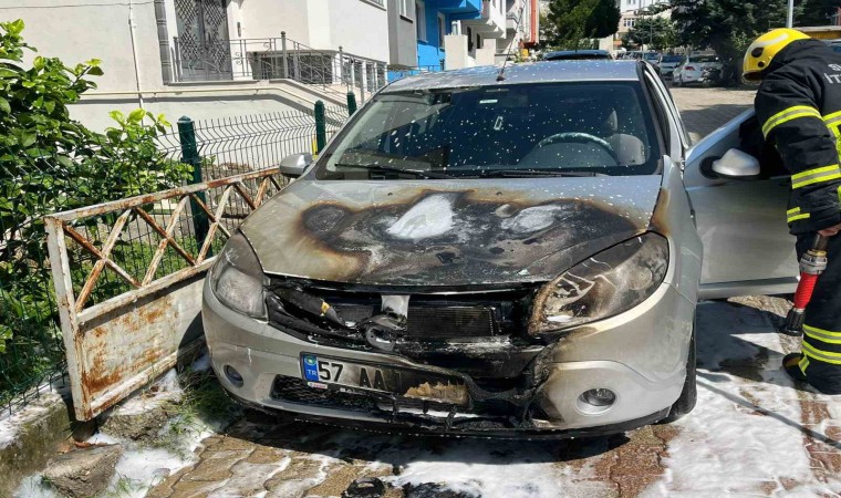 Yangın, itfaiye ekiplerince kısa sürede söndürülürken otomobil kullanılamaz hale geldi.