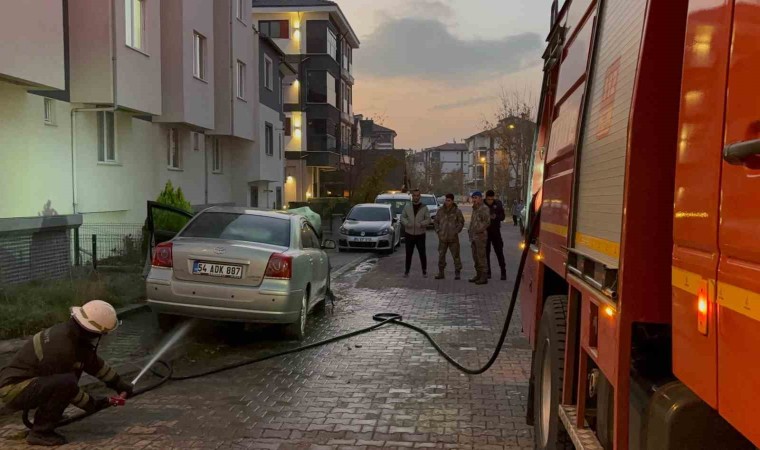Yangın, Sağlık Mahallesi Cefakar Sokak üzerinde meydana geldi. Edinilen bilgiye göre, R.K. isimli vatandaş, elektrik arızası bulunan 54 ADK 887 plakalı otomobilini sanayiye götürmek istedi. Park halindeki aracının marşına basan R.K., motor kısmından dumanlar yükseldiğini fark etti. Durum 112 Acil Çağrı Merkezi’ne bildirdi. Motor kısmında elektrik kaynaklı çıkan yangın otomobilin ön kısmını tamamen sardı. Olay yerine itfaiye ve polis ekipleri sevk edildi. Alev alev yanan otomobil, kısa süre içerisinde söndürüldü. Motor kısmı tamamen yanan otomobil, kullanılamaz hale geldi.
