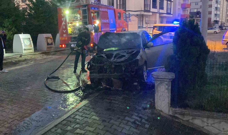 Bolu’da park halindeki bir otomobil, motor kısmından alev alarak kullanılamaz hale geldi.