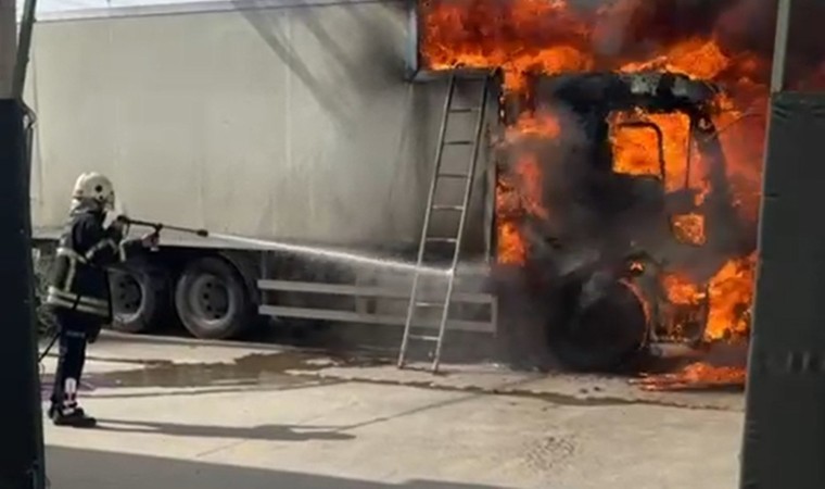 Görgü tanığı çevre esnaf ise, "Tır buraya park ettikten yaklaşık 1 saat sonra yangın başladı. Motor içerisinden kıvılcım çıktı. 5 dakika içerisinde de bu hale geldi" diye konuştu.
