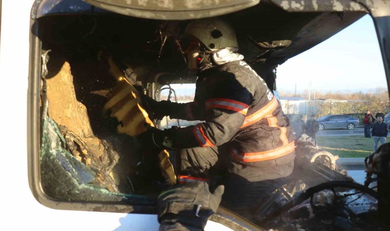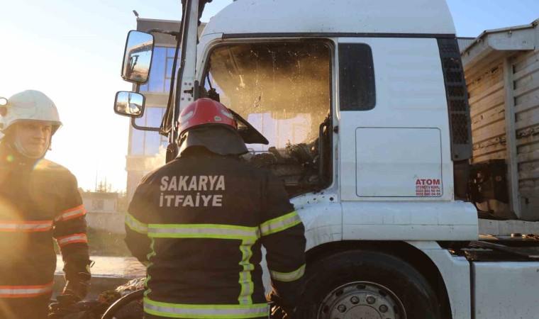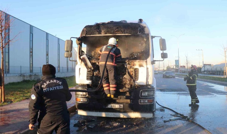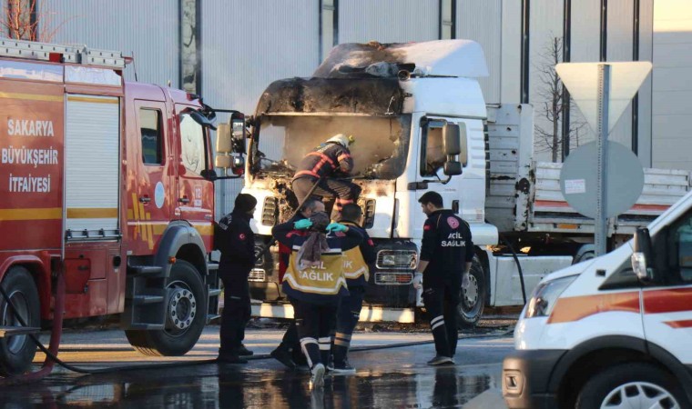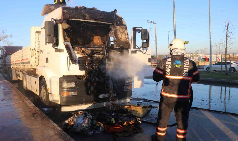 Sakarya’nın Arifiye ilçesinde yol kenarında park halindeki bir tır, alev alev yandı. İtfaiye ekiplerinin müdahalesiyle söndürülen tırın çekici kısmı kullanılmaz hale geldi.