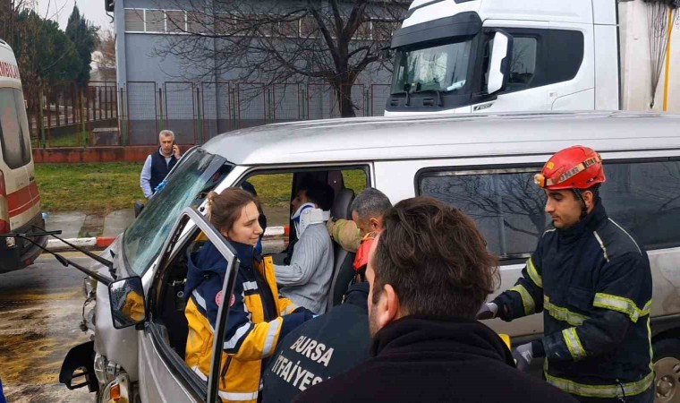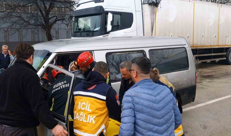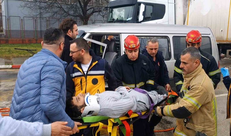 Bursa’nın İnegöl ilçesinde park halindeki tıra çarpan minibüsteki ikiz kardeşler ile 1 yolcu yaralandı.