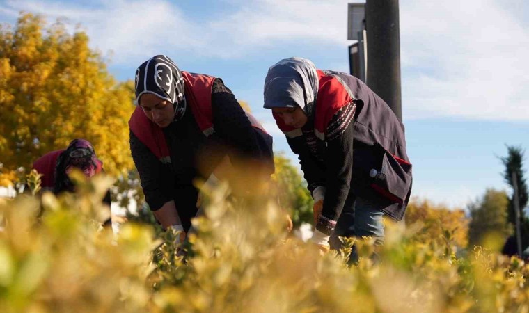 Düzce Belediyesinin kadın personelleri park, bahçe ve yeşil alanlara bakım yapıyor.