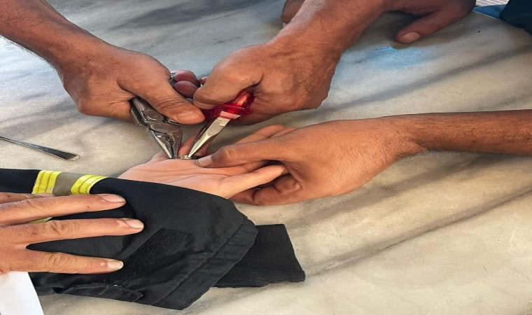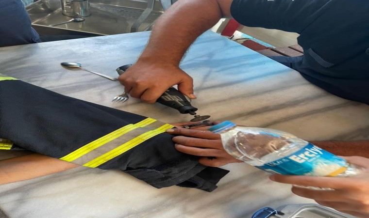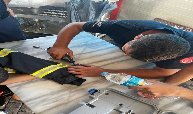 Hatay’ın Antakya ilçesinde taktığı yüzük parmağına sıkışan çocuğun imdadına itfaiye ekipleri yetişti.
