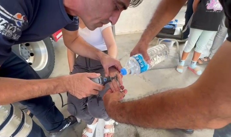 Hatay’da kadının parmağına sıkışan yüzük itfaiye ekipleri tarafından spiralle kesilerek çıkarıldı.