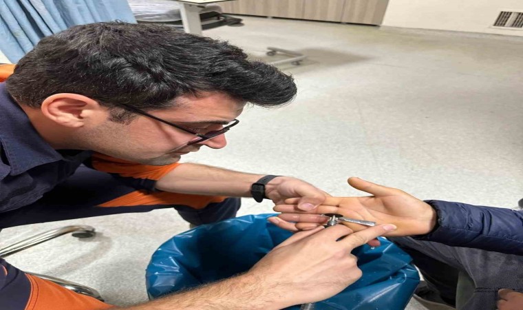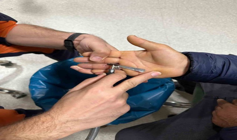 Elazığ’da bir adamın parmağına sıkışan yüzük, itfaiye ekiplerinin çalışması sonucu çıkarıldı.