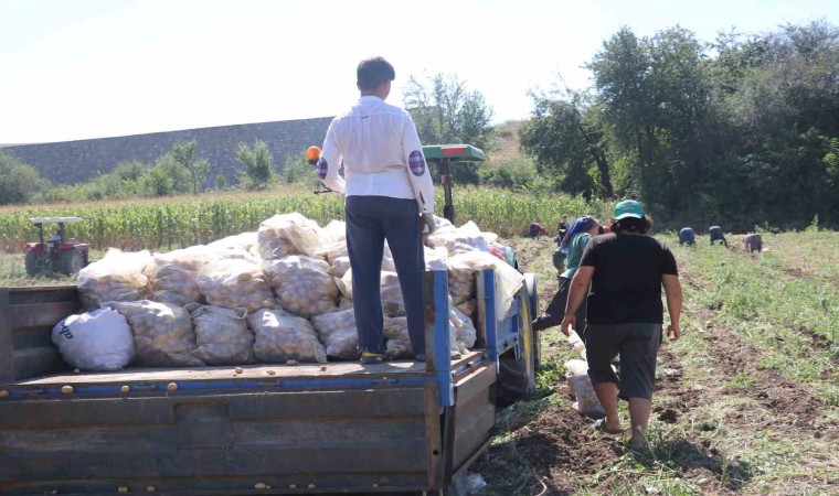 Patates deyince akla ilk gelen şehirlerden biri olan Bolu’da patates hasadı başladı. Üreticilerin nisan-mayıs aylarında toprakla buluşturduğu patatesler toplanmaya başlandı. Günlüğü 400 lira olan patates toplama işçileri, sıcak havada tarlalarda kovalarla patatesleri topluyor. Kovalarla tarladan toplanan patates, çuvallara doldurularak, traktör römorklarına yükleniyor. Üretici Erdal Özkan, zorlu şartlar altında tarladan sofralara getirilen patateste bu sene dengesiz yağışlar sebebiyle verimin yüzde 30 düştüğünü ifade etti. Yağışların patates verimine etki ettiğini dile getiren Özkan, “Bu sene, geçen seneye göre verim yüzde 30 daha az. Dengesiz yağışlar nedeniyle verim düştü. Yağmur hızlı ve çok yağdı. Patates çizilerinde su birikti. Bu sebeple de çürüme oldu. Ben kendim bu tarlayı 4 kere suladım. Ondan sonra da patates tarlasında fazla ot oldu. 5’nci kez sulamamaya karar verdim” dedi.