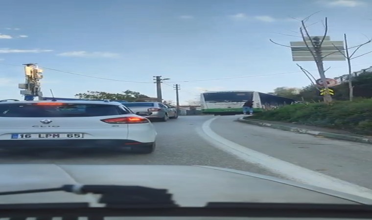 Bursa’da paten ile kayan bir genç yorulunca otobüsün arkasına tutunarak seyahat etti. Âdetâ ölümle dans eden genci görenler, o anları anbean kayda aldı.