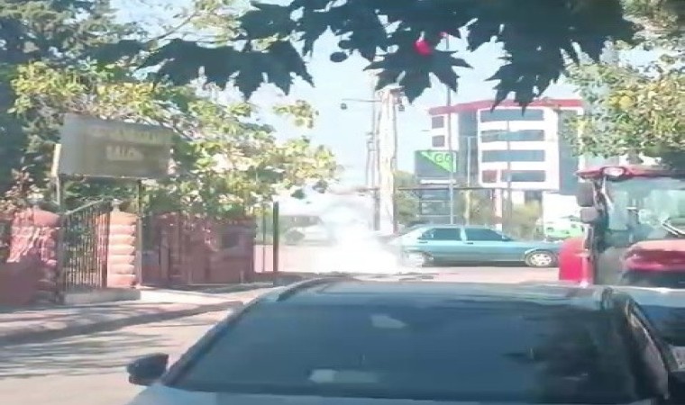 Adıyaman’da, bulunduğu yerden koparak aşağıya düşen ve park edilmiş bir araç yanında patlayan elektrik hattı yürekleri ağza getirdi.