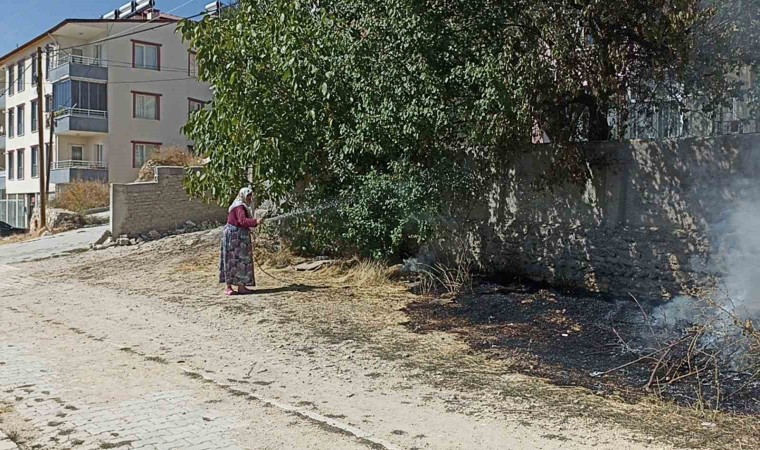 Sivas’ın Gürün ilçesinde tırın patlayan lastiğinin oluşturduğu kıvılcım, ot yangınına neden oldu. Hızla büyüyen alevler evlere sıçramadan itfaiye ve vatandaşların yardımıyla söndürüldü.