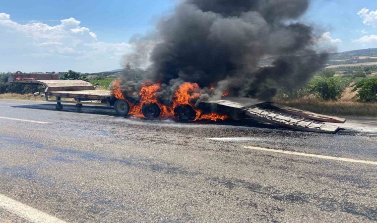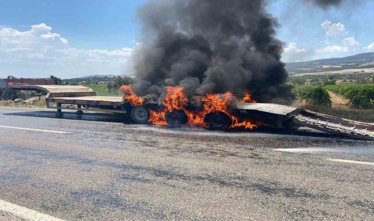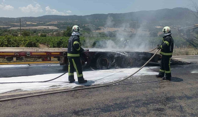 İş makinesi taşımacılığında kullandığı dorsesini tırdan ayıran sürücü D.U. ve çevredeki vatandaşlar, bir yandan alevlere müdahalede bulunurken, diğer yandan ihbarda bulundu. İhbar üzerine bölgeye sevk edilen itfaiye ekipleri, yangını kısa sürede kontrol altına aldı.
