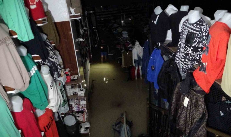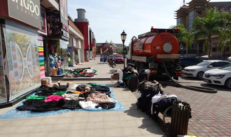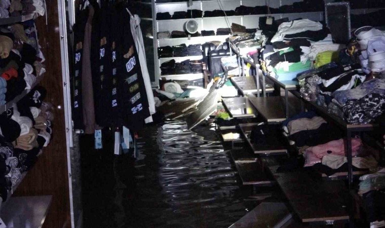 Antalya’nın Manavgat ilçesinde bina inşaat halindeyken şantiye suyu olarak kullanılan su borusunun patlaması sonucu tekstil mağazasının zemin katının sular altında kaldı. Mağazadaki zararın 3 milyon lira dolayında olduğu iddia edildi. Mağazada tamamen zarar görmeyen, kısmen ıslanan giyim eşyaları, kurumaları için kaldırımda güneş altına serildi.