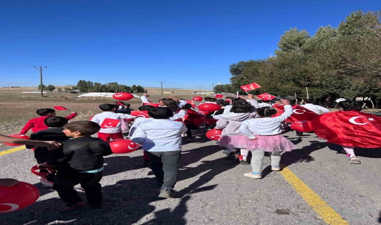Etkinliğin en dikkat çeken anlarından biri, öğrencilerin koro eşliğinde köy meydanında gerçekleştirdikleri yürüyüştü. Cumhuriyet ruhunu yansıtan marşlarla süslenen geçit töreni köy halkının büyük beğenisini kazandı. Miniklerin seslendirdiği Cumhuriyet marşları, etkinliği izleyenlere duygu dolu anlar yaşattı.