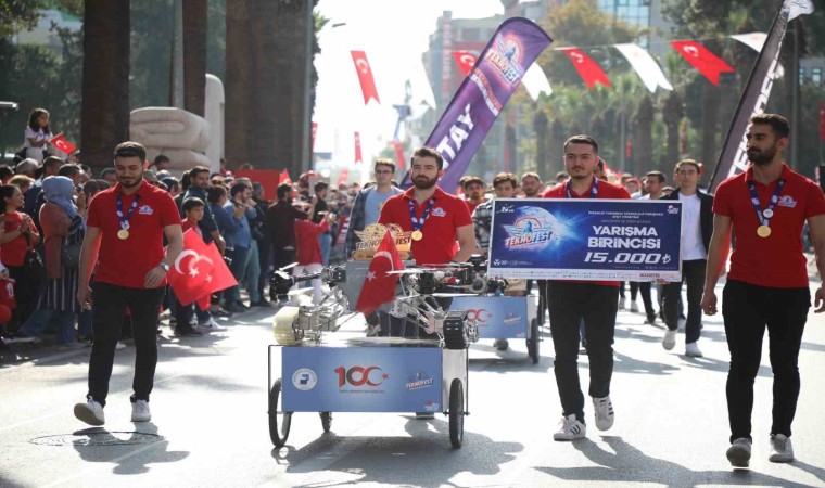 PAÜ Teknotent, 29 Ekim kortej yürüyüşünde 9 proje takımında yer alan 62 öğrencisiyle yerini aldı. PAÜ Teknokent’in 1’i dikey inişli olmak üzere 3 roket tasarımı taşıyan Hazar Takımı, kendi tasarımları olan İHA’yı taşıyan Algan Takımı, yağın söndürme roketi projesiyle Ulaş Takımı, uçan amfibik araç tasarımıyla Rigid takımı ve insansız su altı aracı projelerini tanıtan Pusat Takımının yanı sıra yürüyüşe katılan Graphone, Umay, Alaz ve Altay takımları, kutlamaları takip eden vatandaşlardan büyük ilgi gördü.