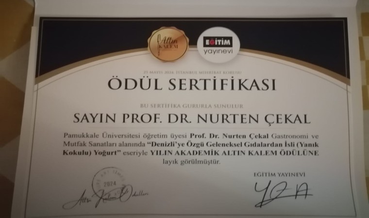 Pamukkale Üniversitesi (PAÜ) Turizm Fakültesi Gastronomi ve Mutfak Sanatları Bölüm Başkanı Prof. Dr. Nurten Çekal, Altın Kalem Ödülleri Gastronomi ve Mutfak Sanatları alanında “Yılın Akademik Altın Kalem” ödülüne layık bulundu.