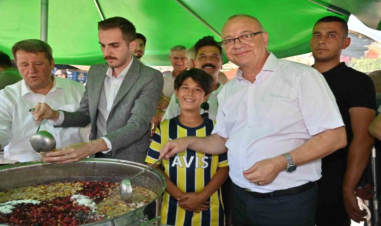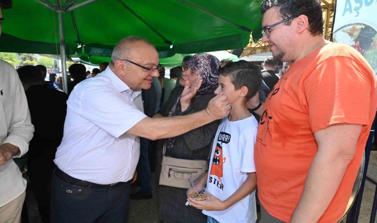 Manisa Büyükşehir Belediye Başkanı Cengiz Ergün, muharrem ayı vesilesiyle Alaybey ve Laleli pazar yerlerinde vatandaşlara aşure dağıttı.